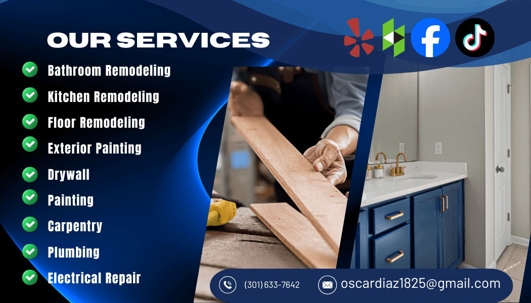 Proudly based in Manassas, Virginia, and serving homes and businesses within a 60-mile radius, Diaz Exclusive Remodeling Services brings over 20 years of experience delivering exceptional remodeling and repair solutions. Our team specializes in kitchen and bathroom remodeling, flooring, interior and exterior painting, drywall, carpentry, plumbing, and electrical repair. From small upgrades to full home transformations, we provide free estimates, quality craftsmanship, and reliable service you can count on every time.